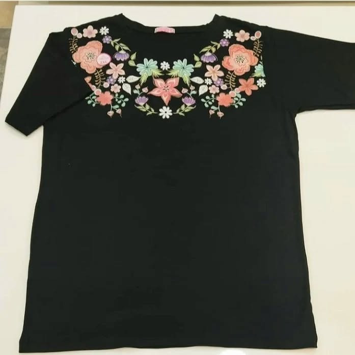 تیشرت دخترانه پیش چاپ گلدار ویسکوز نخ ۱۰۰٪بهار پوش
