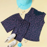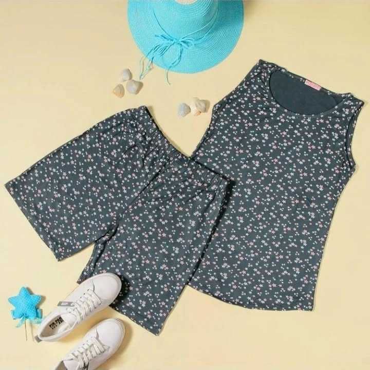 تاپ و شلوارک دخترانه مدل شلوارک بالا زانو تمام چاپ ویسکوز نخ ۱۰۰٪بهار پوش