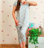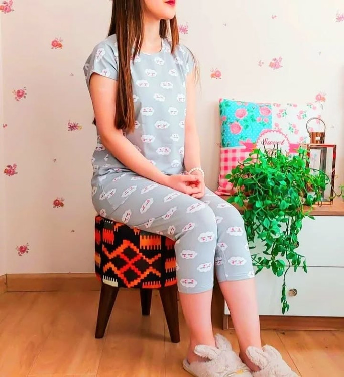 ست آستین سرخود و شلوارک دخترانه مدل طرح ابر شلوارک زیر زانو پنبه سوپر بهار پوش