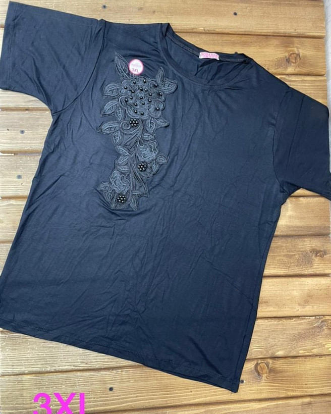 تیشرت زنانه مدل دانتل و مروارید ویسکوز نخ ۱۰۰٪بهار پوش فقط مشکی دو و سه ایکس