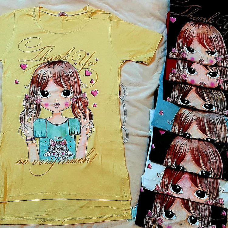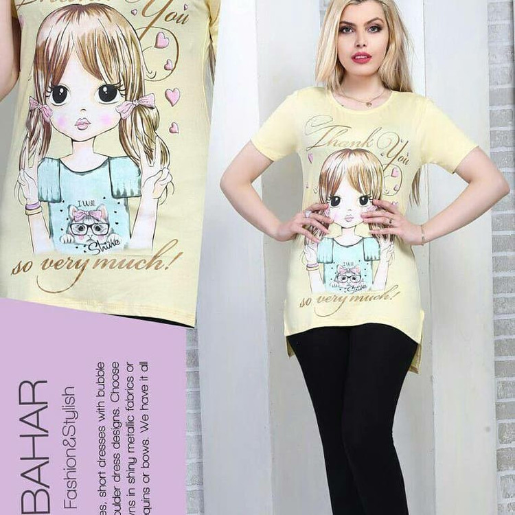 تیشرت دخترانه پشت بلند طرح عروسکی ویسکوز نخ ۱۰۰٪بهار پوش فری سایز تا ۴۴