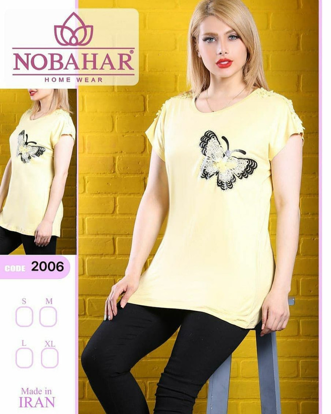 تیشرت دخترانه سرشانه دانتل طرح پروانه ویسکوز نخ ۱۰۰٪بهار پوش