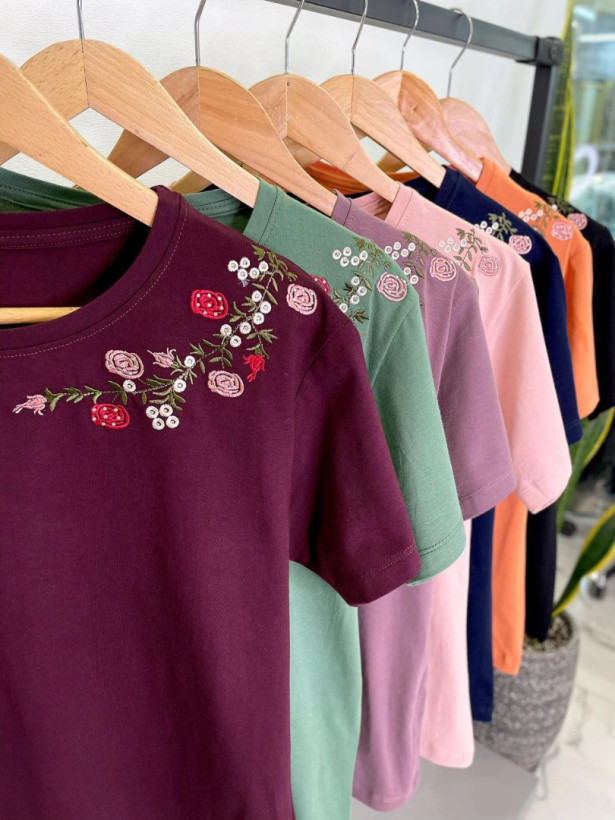 تیشرت دخترانه گلدوزی و نگینی پنبه سوپر بهار پوش فری سایز