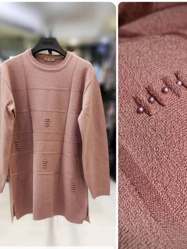 بلوز بافت زنانه استین بلند منجق دوزی شده طرح مربع