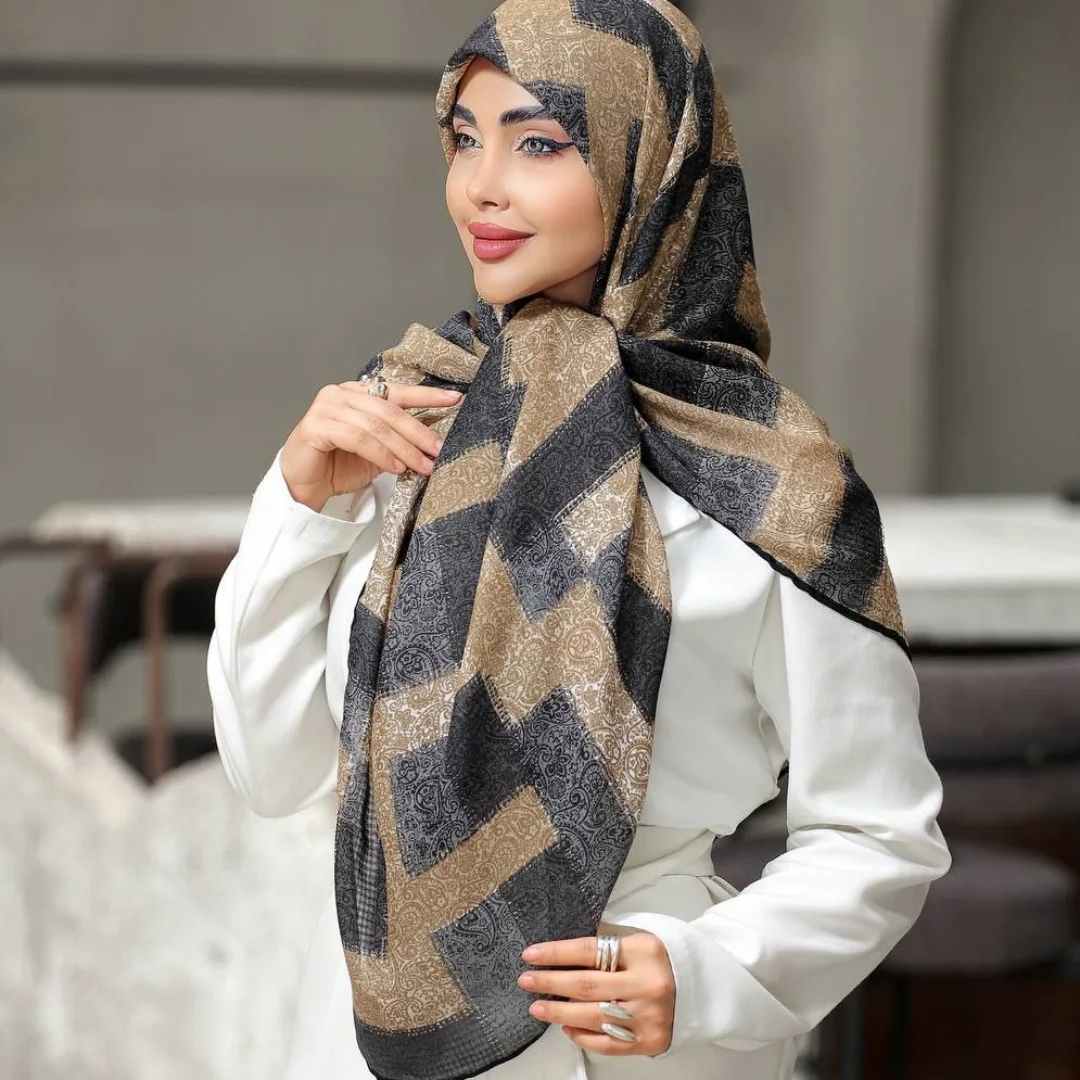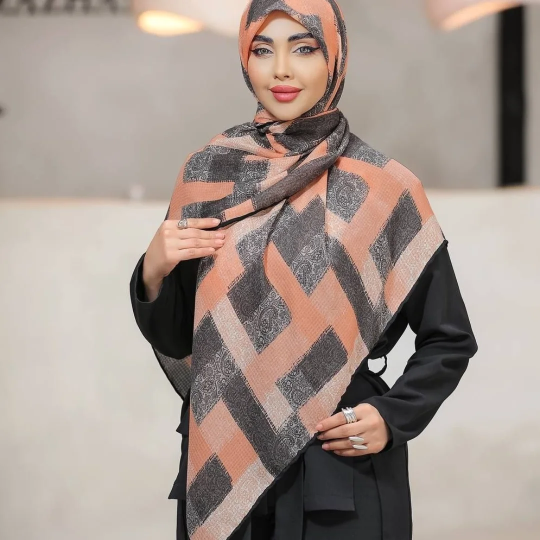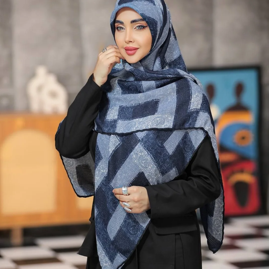 روسری زنانه چاپ خیس پارچه گارزا گرم دار اعلا هشت رنگ متفاوت عرض ۱۴۰ دور دست دوز