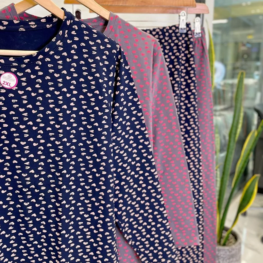 ست تیشرت و شلوار زنانه آستین بلند طرح قلبی پنبه سوپر بهار پوش سایز ۲و ۳ ایکس دو رنگ