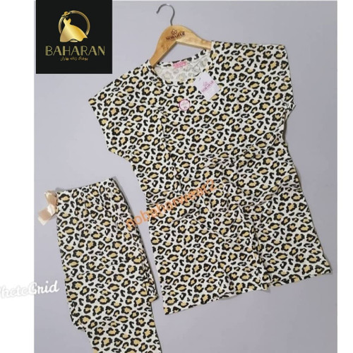 آستین سرخود و شلوارک دخترانه مدل شلوارک زیر زانو پلنگی پنبه سوپر بهار پوشناموجود
